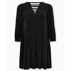 Torrid Size 1X 14-16 Black Shimmer Ladder Neck Trapeze Mini Dress