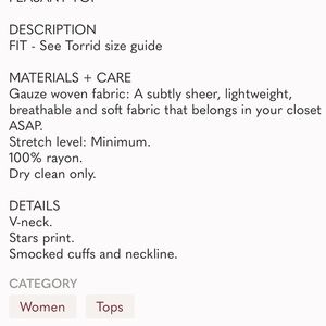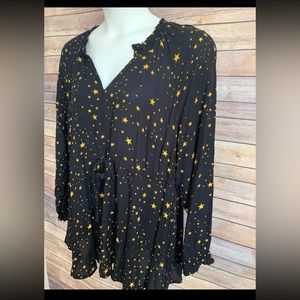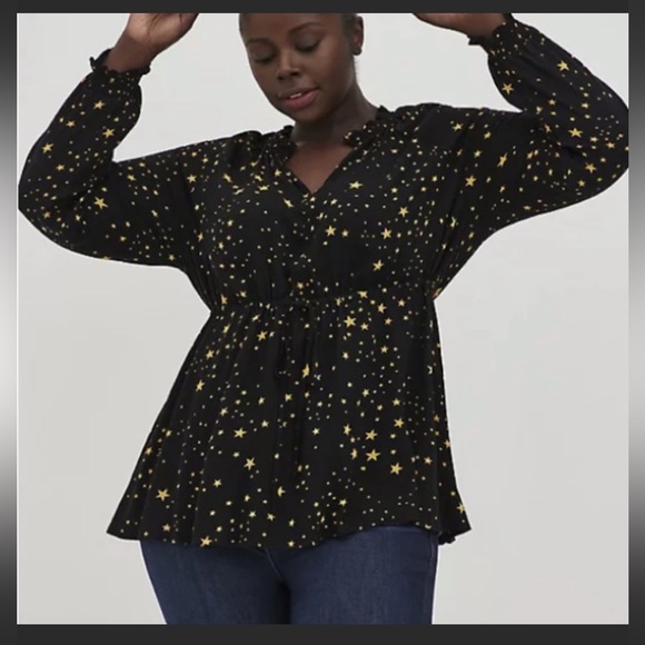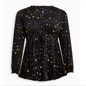 Torrid Size 2 Babydoll peasant style star print waist tie top Light weight VNeck Brand New