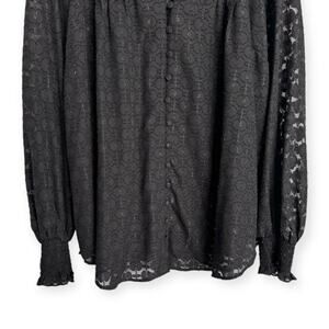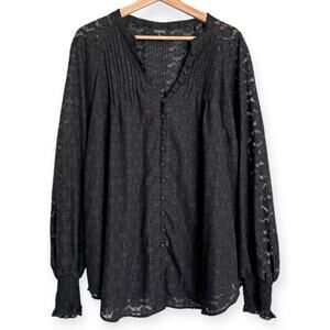 Torrid Size 2 Black Geo Clip Chiffon Smocked Peasant Button Up Blouse Women's 2X