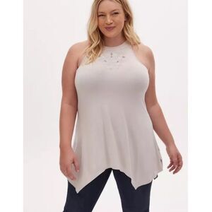 Torrid Size 2 Chateau Gray Ivory Embroidered Handkerchief High Neck Tank