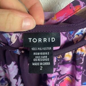 Torrid Size 2 Georgette Sharkbite Hem Swing Cami Purple Floral Tank Top 2X