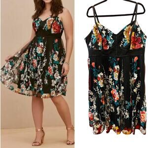 Torrid Size 20 Black Mesh Floral Embroidered Party Cocktail Formal Tank Dress