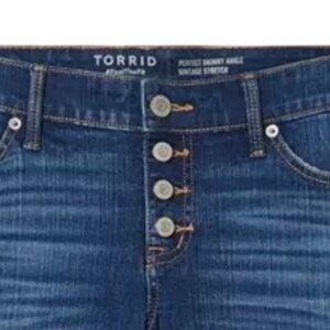 Level up your everyday style with these Torrid Perfect Skinny Ankle jeans in a flattering size 26R. Designed with vintage stretch fabric for ultimate comfort and a sleek, body-hugging fit, these jeans feature a trendy distressed finish, button fly closure, and ankle-length cut for a chic, edgy vibe.
