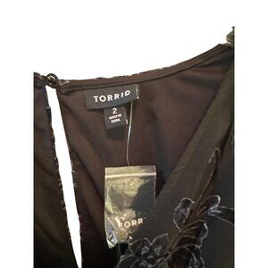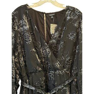 Torrid Size 2X Black Floral Embroidered Long Sleeve Wrap Dress With Tie Belt