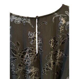 This black floral midi burnout velour blousson surplice embroidered wrap elastic waistband dress by Torrid features a flattering design with a tie belt. It offers a timeless look for professional settings.