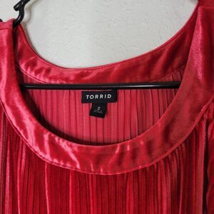 Torrid Size 2X Red Velvet High Neck Halter Pleated Goddess Sleeveless Tank Top