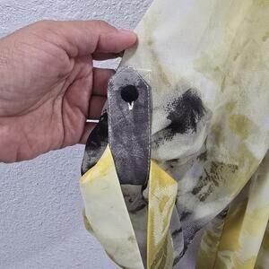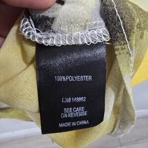 Torrid Size 2X Sheer Blouse Yellow Abstract Print Button Down 3/4 Sleeve Casual