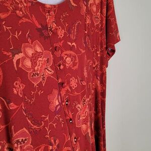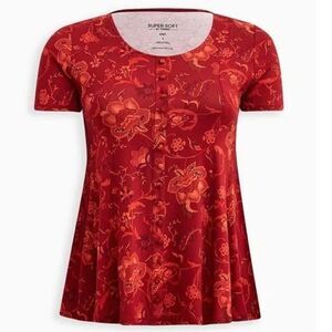 Torrid Size 2X Super Soft Button Front Seamed Top Floral Short Sleeve Red Orange