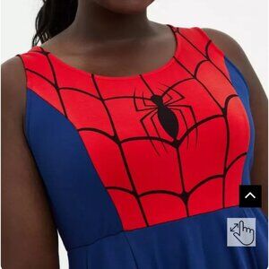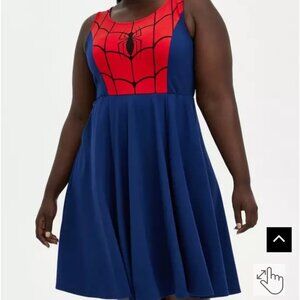 Torrid size 3 (22/24W) Marvel Spiderman dress, new with tags. The dress is sleeveless with a skater silhouette. It is a mini length. The fabric has lots of stretch and it has pockets!!! It's perfect for a Marvel fan!