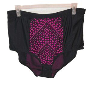 Torrid Size 3 3X Black Purple Laser Cut Tummy Control High Waist Swim Bottom