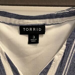 Torrid Size 3 3X Blue and White Tab Sleeve Dress Striped Rayon Casual Flowy