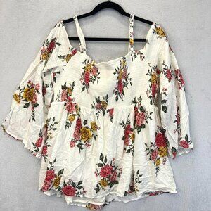 Torrid Size 3 Smocked Floral Off the Shoulder Top 3X Colorful 3/4 Sleeve Boho