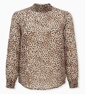 Torrid Size 3X 22-24 Leopard Sheer Chiffon Smocked Mock Neck Blouse