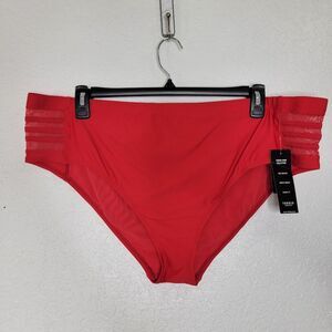 Torrid Size 3X Red Mid-Rise Mesh Ladder Caged Striped Side Bikini Swim Bottoms