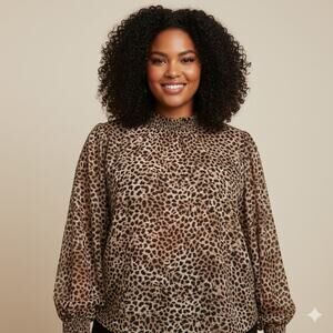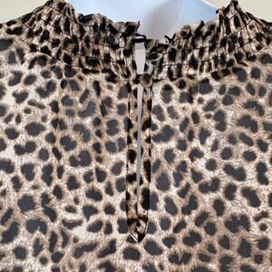 Torrid Size 3X Top Glam Retro Leopard Blouse Shirred Ruffle Neck Victorian NWT