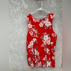 Torrid Size 4 Floral Babydoll Tank Womens Size Blood Orange Challis But…