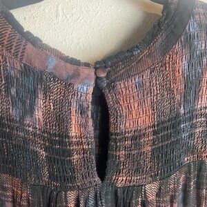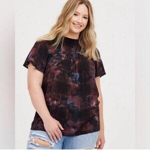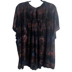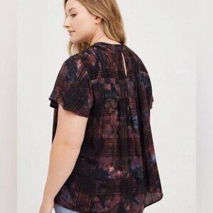 Torrid Size 5 Crinkle Gauze Smocked Flutter Sleeve Blouse Top Plaid Grunge 5X