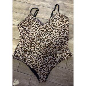Torrid Size 5 One Piece Swimsuit Adjustable Strap Leopard Print Bra Cups