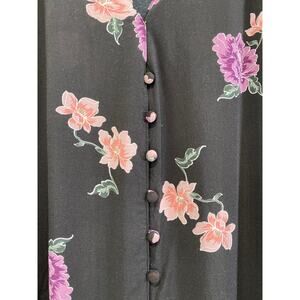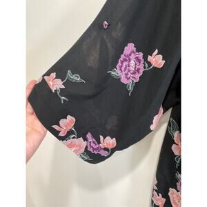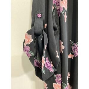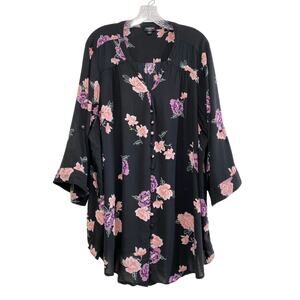 Torrid Size 5X Harper Challis Button Front 3/4 Sleeve Blouse Black Floral Rayon