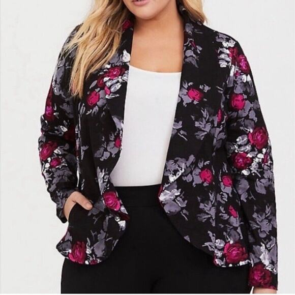 Torrid Size 6 6X Ponte Knit Flare Open Front Blazer Cardigan Floral NEW Classic