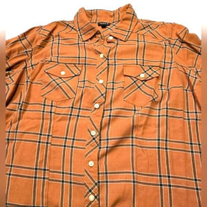 Torrid, Size XL, Dusty Orange Plaid Twill Button-Up Shirt