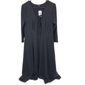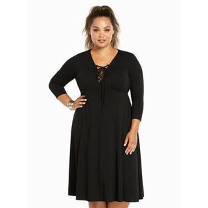 Torrid Size 00 M/L US 10 Black Midi Jersey Tie-Front Dress N11
