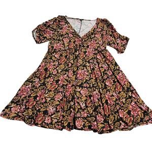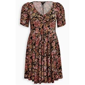 Torrid Skater Dress Surplice Neck Stretch Women's Plus Size 4 aka 26-28 Floral Black Pink Green 15480656 1805682 M21010
