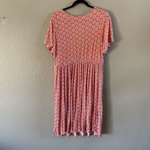 Torrid Skater Dress Womens 1X Orange Floral Super Soft Knit Flutter Short Sleeve