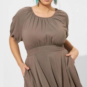 Torrid Skater Mini Dress Slub Puff Sleeve Brown Size 1X 14/16