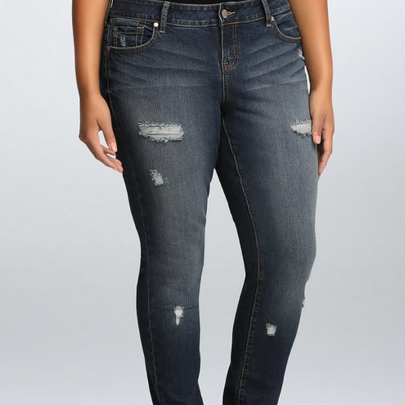 Torrid Skinny Jean - Med Wash w Destruction SZ 18