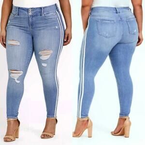 Torrid Skinny Jeans Distressed Jeggings Plus Sz 18 Side Stripes Light Wash