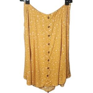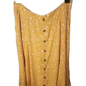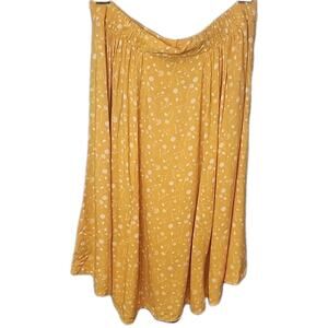 The Torrid skirt in size 1X is a retro floral, boho-inspired piece made from 100% rayon. This A-line skirt features a midi length and a vibrant yellow color, perfect for adding a pop of color to your wardrobe. The retro theme adds a unique and vintage touch, making it a standout piece in any woman's clothing collection. Perfect for those who love plus-size clothing, this skirt is both stylish and comfortable, ideal for a casual day out or a summer picnic.