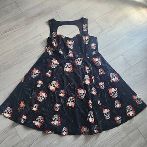 Torrid Skull Dress Womens 22 2XL Plus Size Swing Cut Out Halloween Black White
