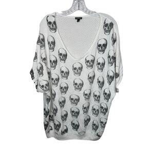 Torrid Skull Print Sweater Top Size 4 White Black V-Neck Lightweight Knit
