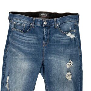 Torrid Sky High Skinny Jeans Size 16R Distressed Denim Premium Womens Blue Denim