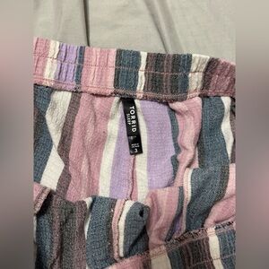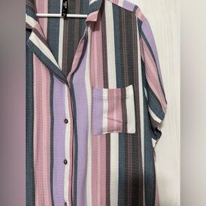Chic button-up shirt with multicolor stripes. Features a classic collar and soft fabric. Chic shorts to match with pockets