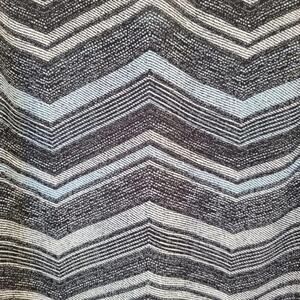 Stylish Torrid Chevron Sleeveless Blouse featuring a bold black, white, and light gray chevron print. This lightweight, semi-sheer tank top offers a relaxed fit with a flattering V-neckline and high-low hem for a modern silhouette. Crafted from soft, flowy polyester — perfect for layering under a blazer or pairing with jeans for an easy chic look.