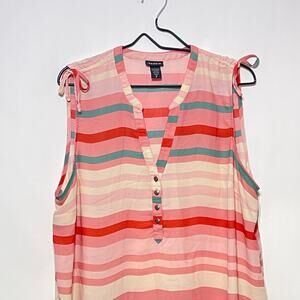 Torrid Sleeveless Blouse Womens 2XL Pink Striped V-Neck Henley Chiffon Tank Top. Excellent Condition