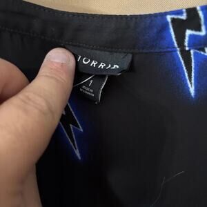 Torrid Sleeveless Button Front Top Size 1 Black Blue Lightning Bolt Print Blouse
