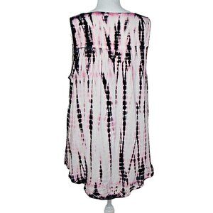 Torrid Sleeveless Flowy Blouse Top Sz 1 Pink Black Tie Dye Key Hole Gold Jewels