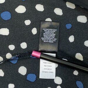 Sleeveless Quarter Zip Scooped V Neck Dotted Top from Torrid. Lovingly worn, looks in excellent condition. Black background with random sized white and blue dot pattern. Delicate light weight woven knit with self banded neckline. Band continues down front. Quarter length pewter zipper. Patch pockets on chest. Straight yoke on back with box pleat on body. Turned up finish curved shirt tail hem. Tailored in a relaxed fit that hits mid thigh. Note: some photos edited to enhance details - shirt background is black.