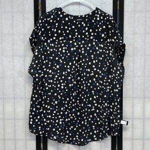 Torrid Sleeveless Zip V Neck Semi Sheer Polka Dot Top Black White Blue 1