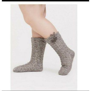 Torrid Slipper Socks Pom Fuzzy Fur Lining Sequins Gray Sweater Knit 7-9