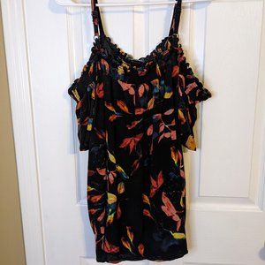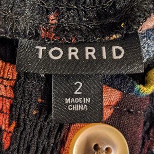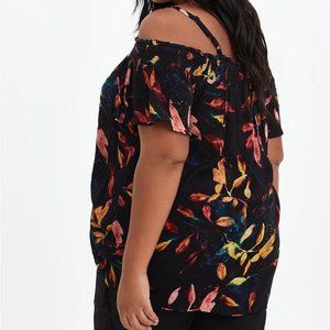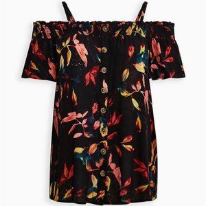 Torrid Smocked Cold-Shoulder Blouse Black Leaf Print - size 2X (18/20)