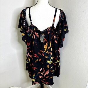 Torrid Smocked Cold-Shoulder Blouse Gauze Leaf Black NWT Front Buttons Size 4x