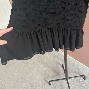 Elegant black ruffled top perfect for any occasion. Features a stylish design with a comfortable fit.