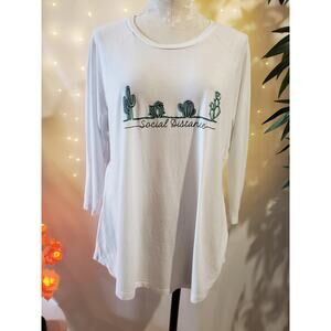 Torrid Social Distance Cactus Classic Fit 3/4 Sleeve White Top Womens Size L Tee