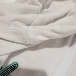 Very good pre-owned condition. Shadow of a spot underneath the graphic, but it is very hard to see. There is also a tiny repair spot underneath the armpit right near the seam. Not visible when wearing and hard to see when looking. Please see all photos for exact representation of item.