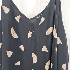 Torrid Sophie Chiffon Button Swing Cami Plus Size 4x Black Watermelons Armpit to armpit 29" Length 33"