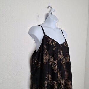 Pre-owned, good condition. No visible holes or stains. Gorgeous delicate black floral lace fabric. V-neckline. Adjustable spaghetti straps. Nude lining. Size per tag: 3 (3X / XXXL). Fabric: Self: 100% Nylon. Lining: 100% Polyester. Please note measurements were taken with the straps expanded to the max. Size per tag does not guarantee desired fit, please see pictures for measurements.